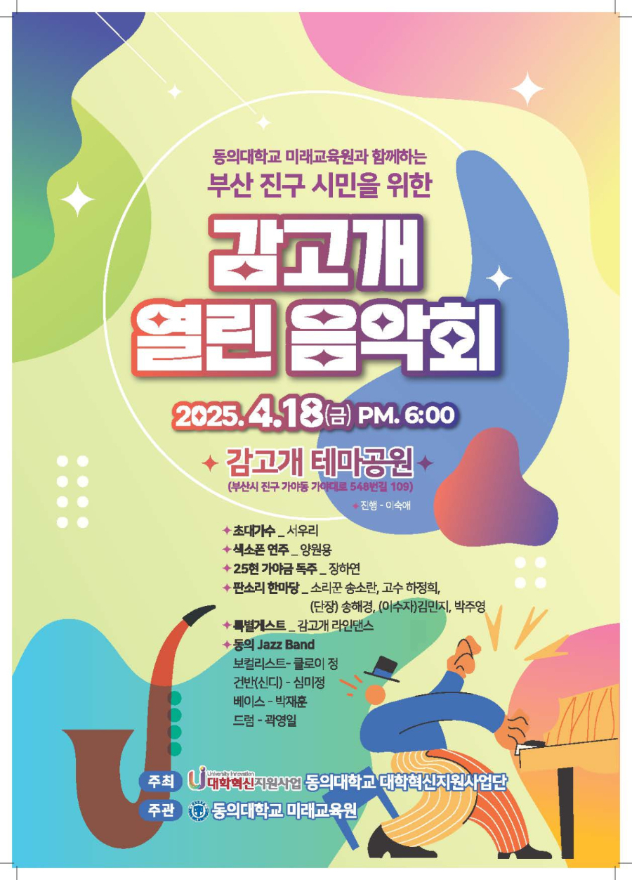 대학혁신지원사업단&미래교육원에서는 감고개 열린음악회를 개최합니다.